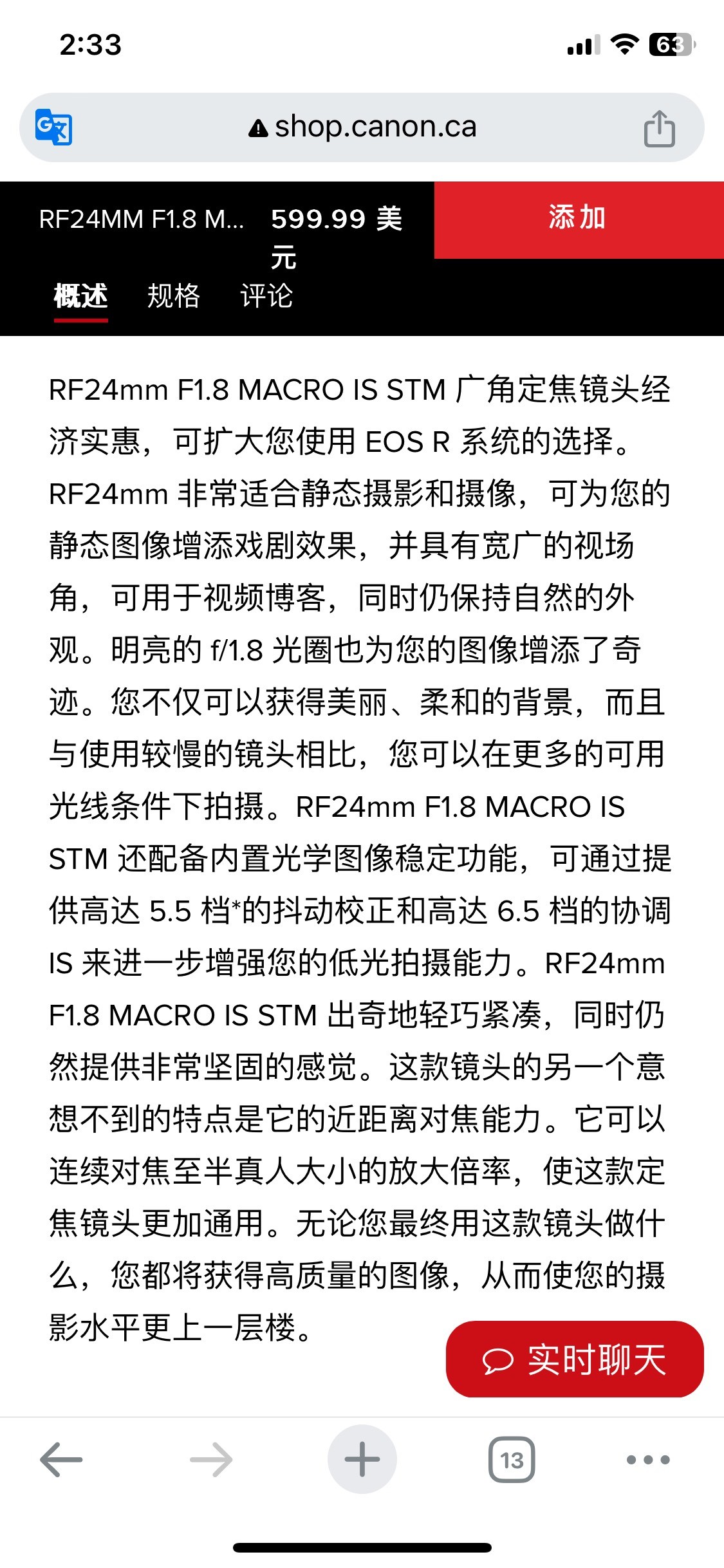 佳能 canon RF24MM F1.8 MACRO IS STM 镜头