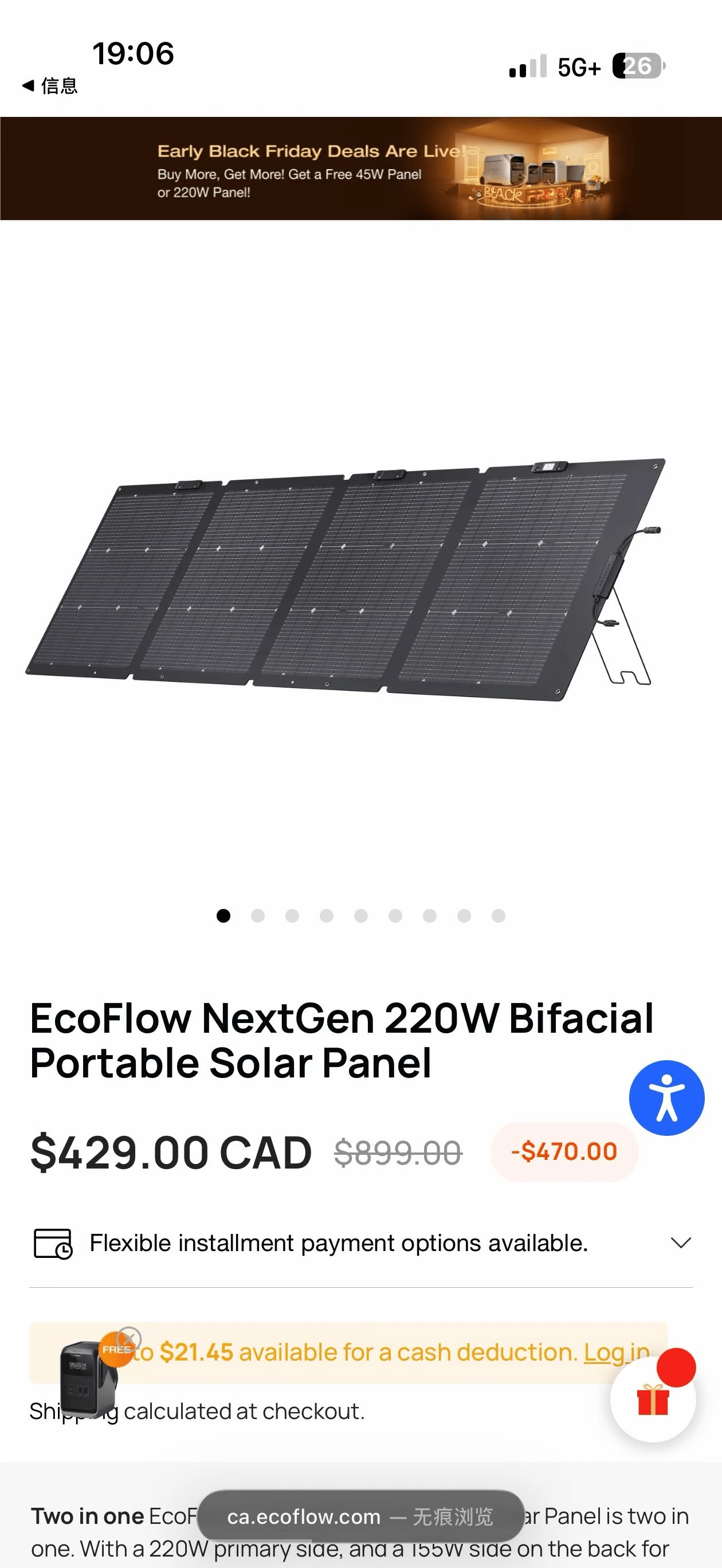 新品 Ecoflow 太阳能板NextGen 220W Bifacial Portable Solar Panel