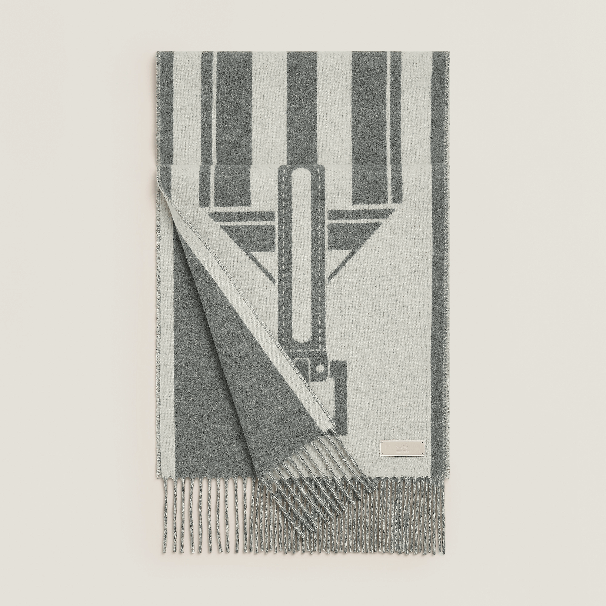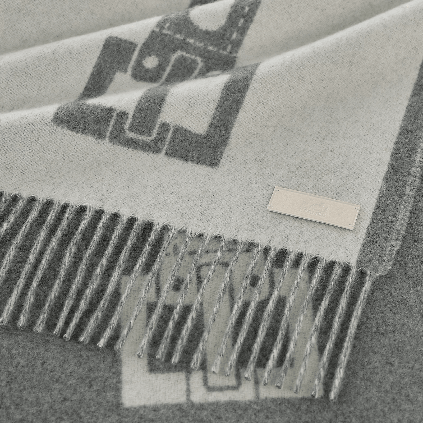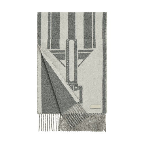 Hermes 爱马仕 围巾 Casaque Les Sangles 100%羊绒 柔软亲肤 灰白拼接