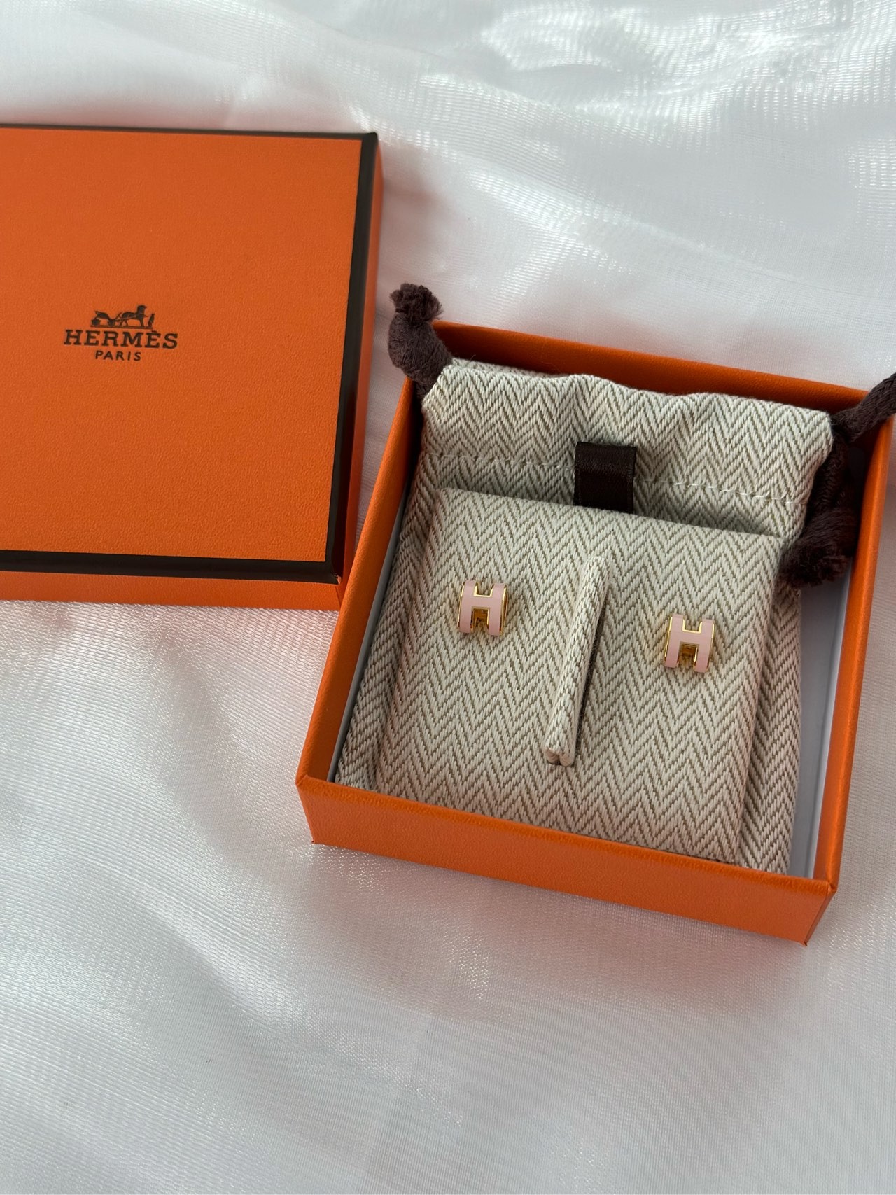 Hermes 爱马仕 Mini Pop H 耳钉 樱花粉金