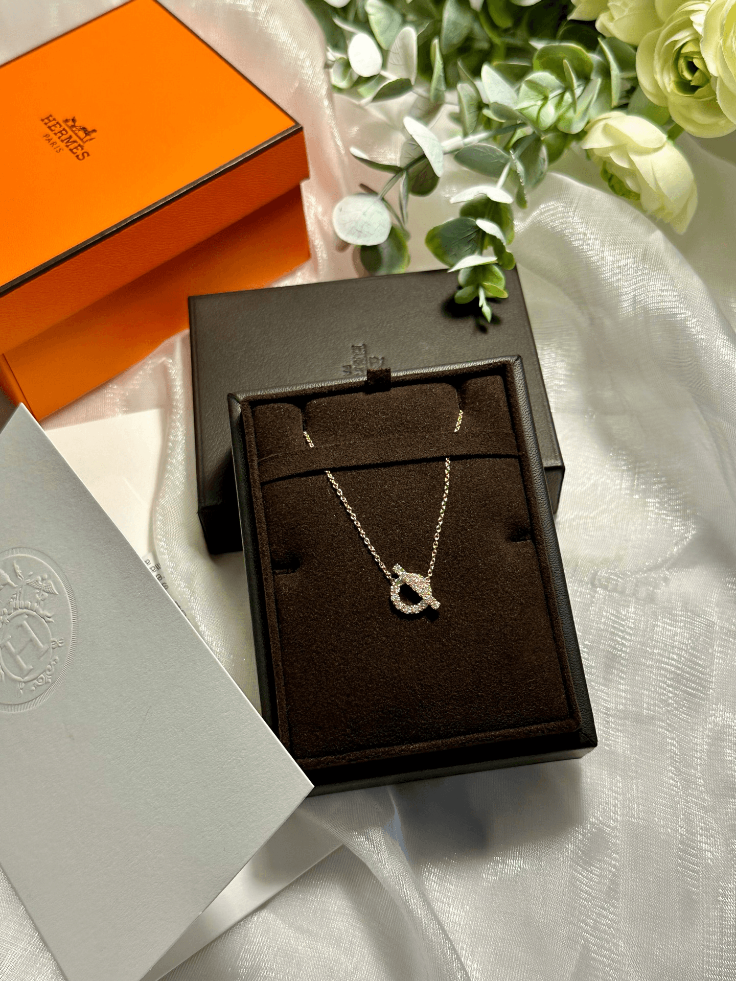 新品 Hermes 爱马仕Finesse 小Q项链 18K玫瑰金+0.46克拉满钻设计