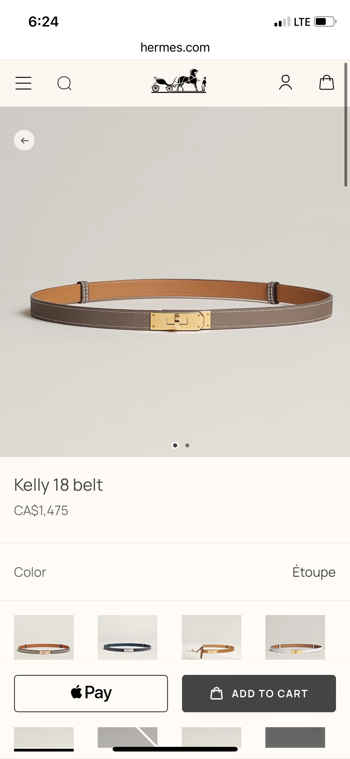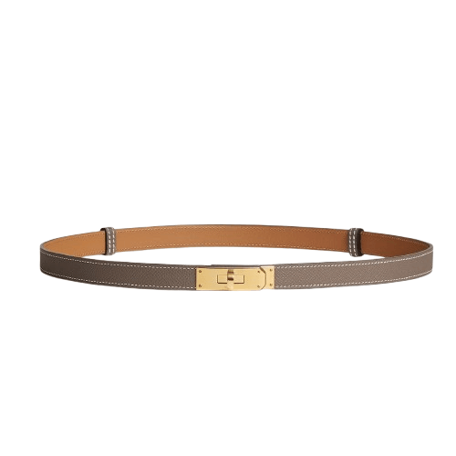 新品 Hermes 爱马仕Kelly 腰带 Étoupe大象灰 金扣 可调节腰带 18mm