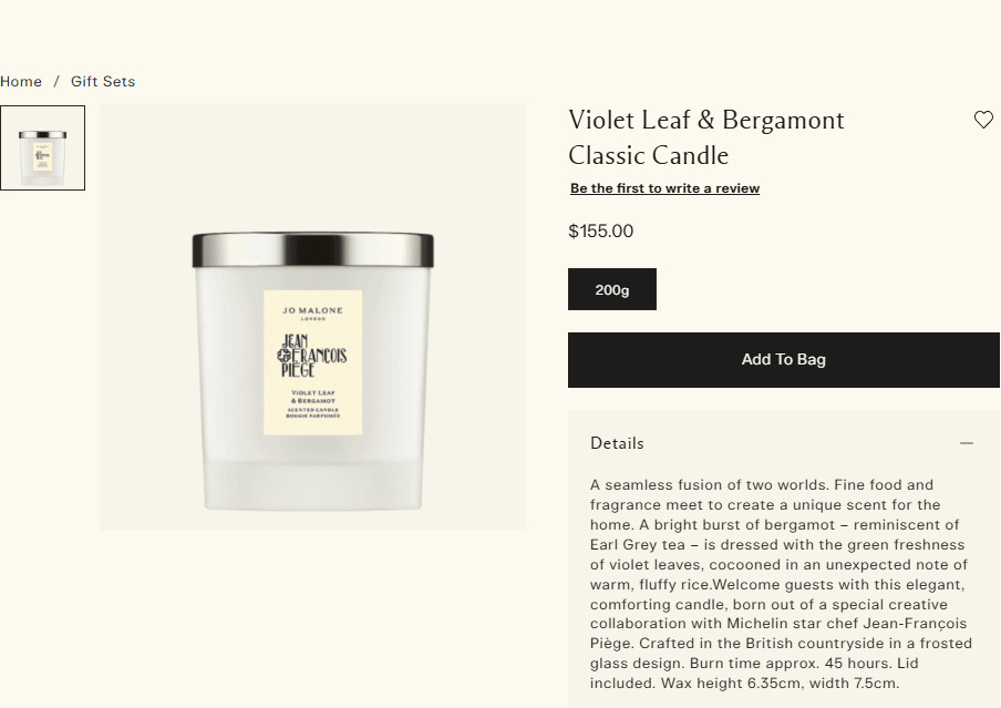 Jo malone 祖马龙 紫罗兰佛手柑 蜡烛 Violent leaf & Bergamont