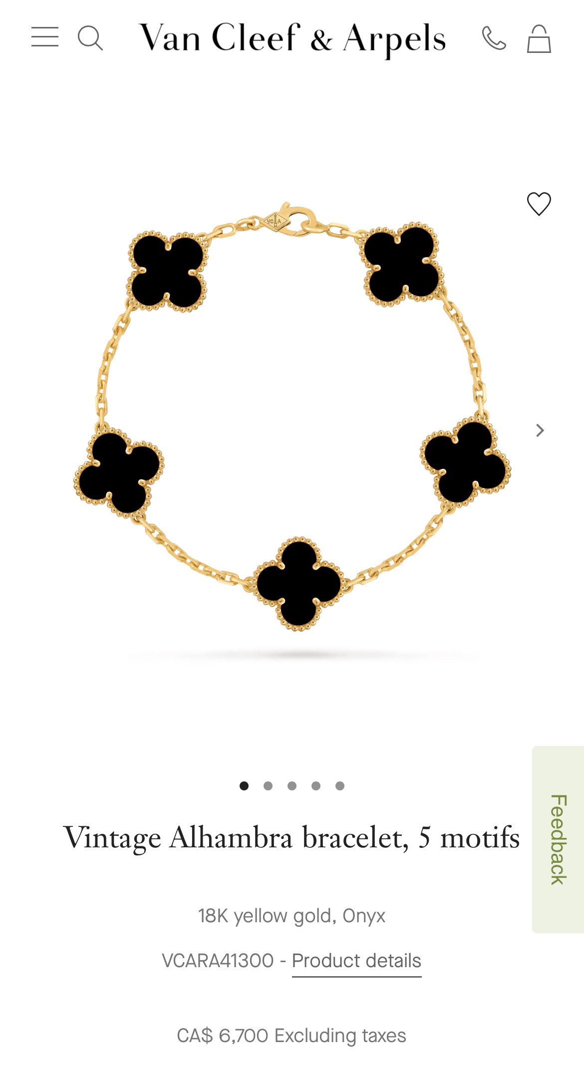 新品 VCA Van Cleef & Arpels 梵克雅宝 黑五花手链