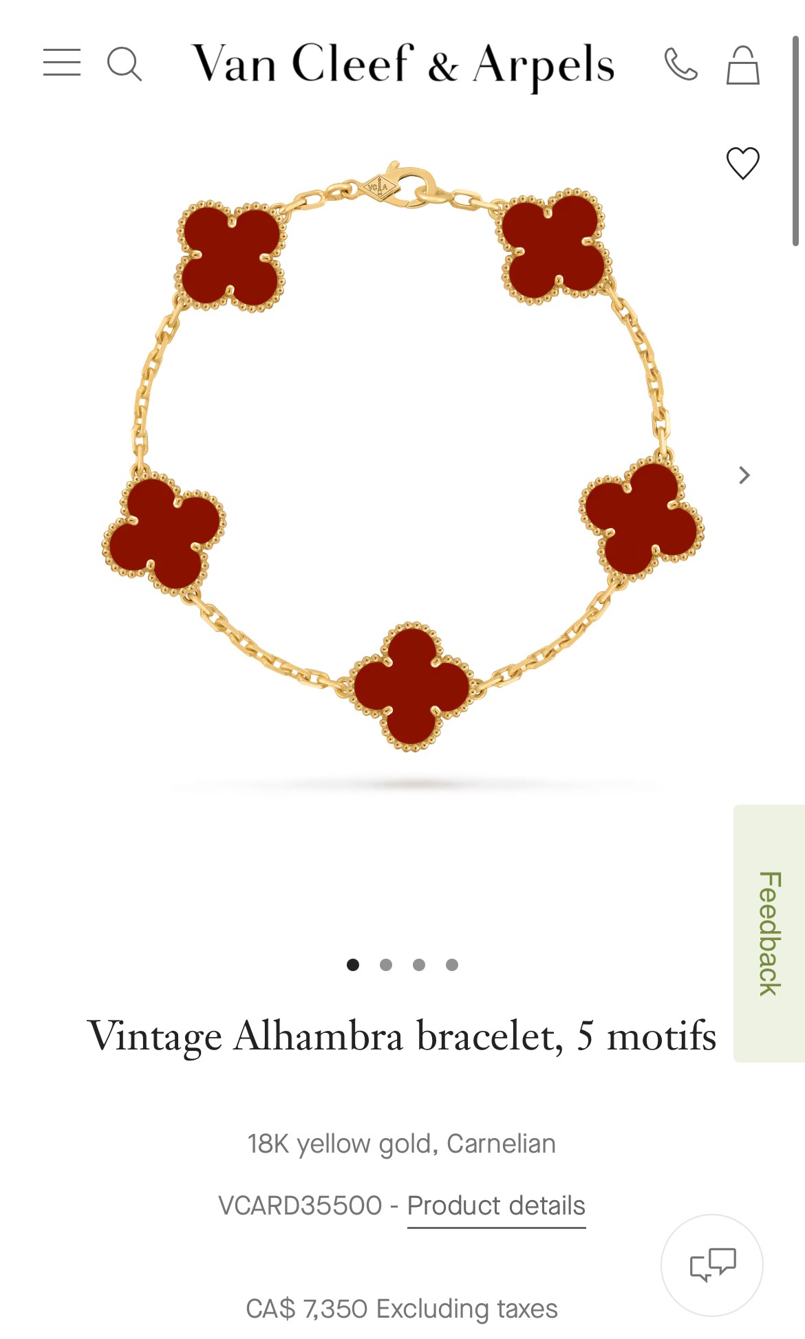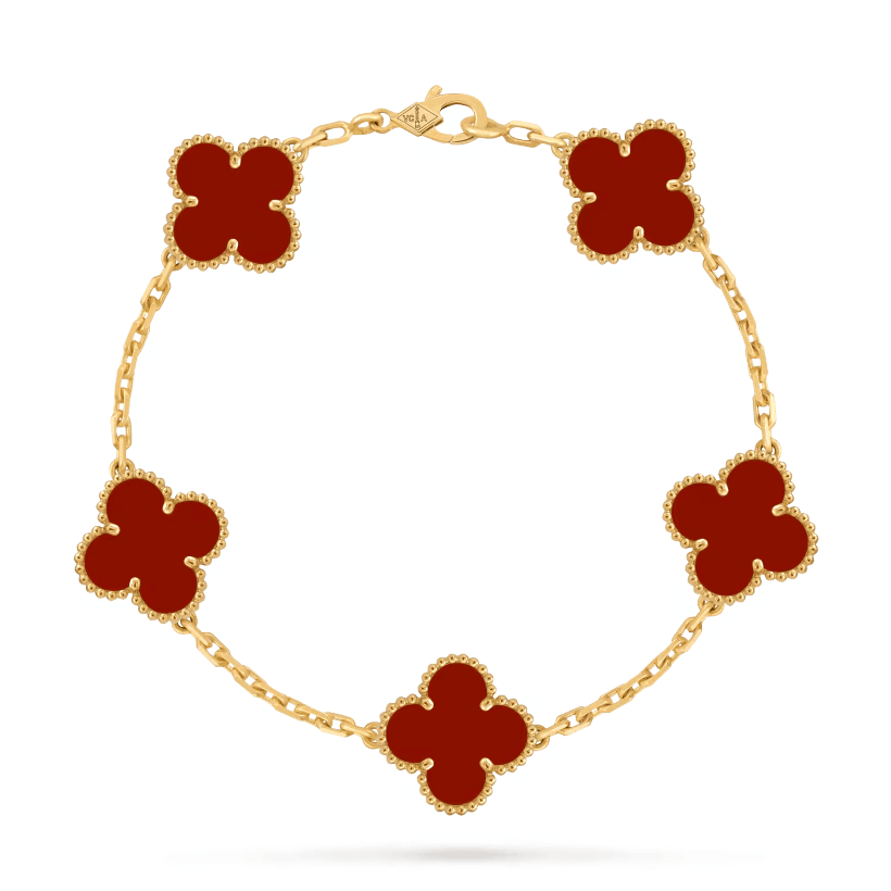 新品 VCA Van Cleef & Arpels 红五花 18k金 五花手链
